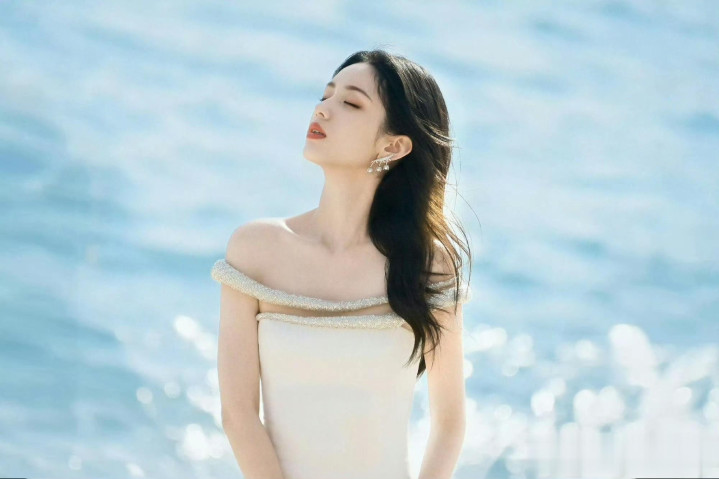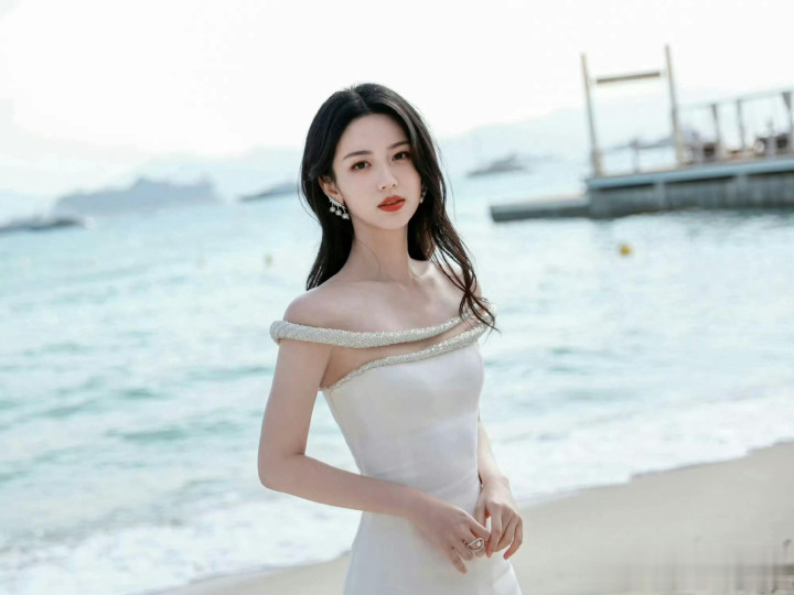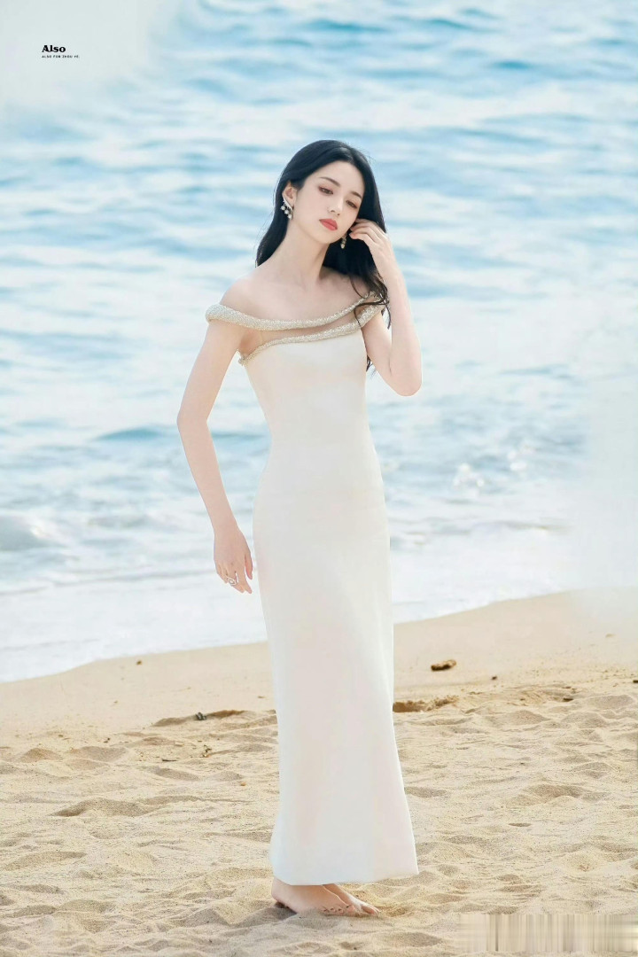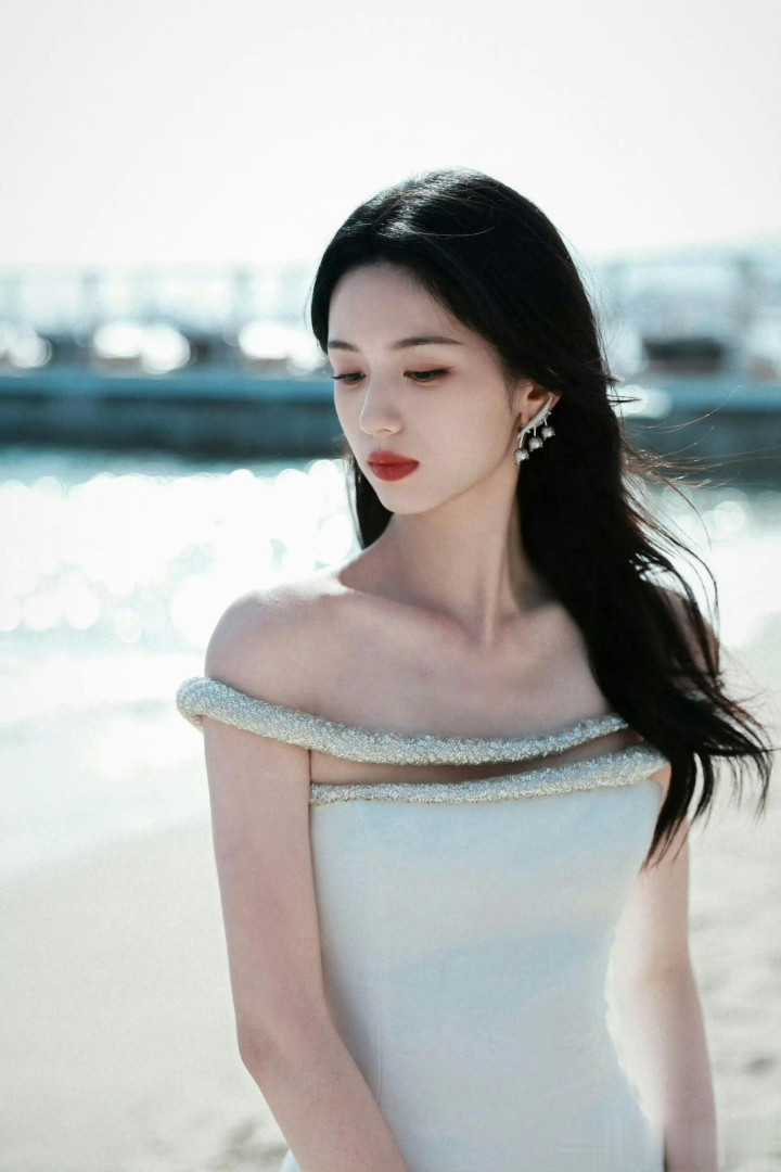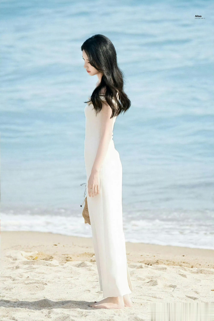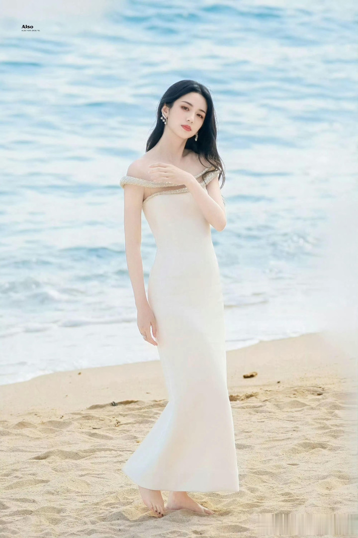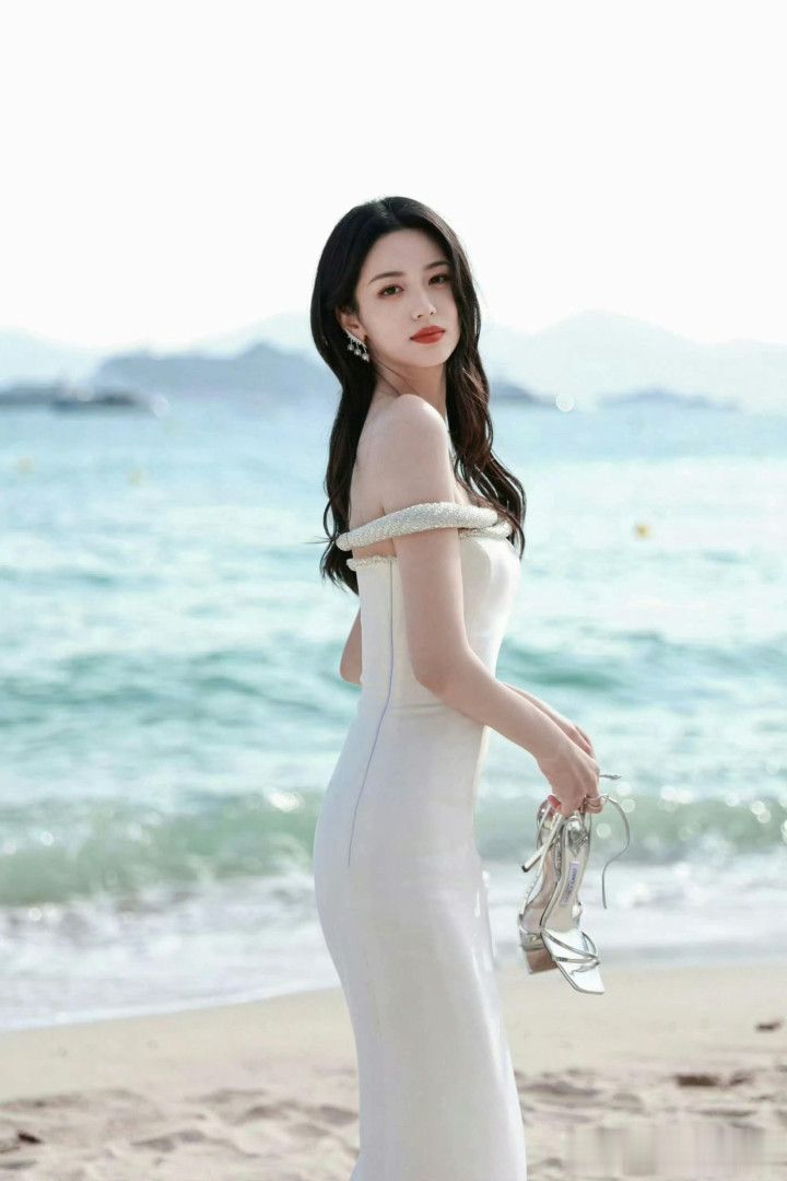 周也海边提高跟超美! 被她的斜刘海萌化了